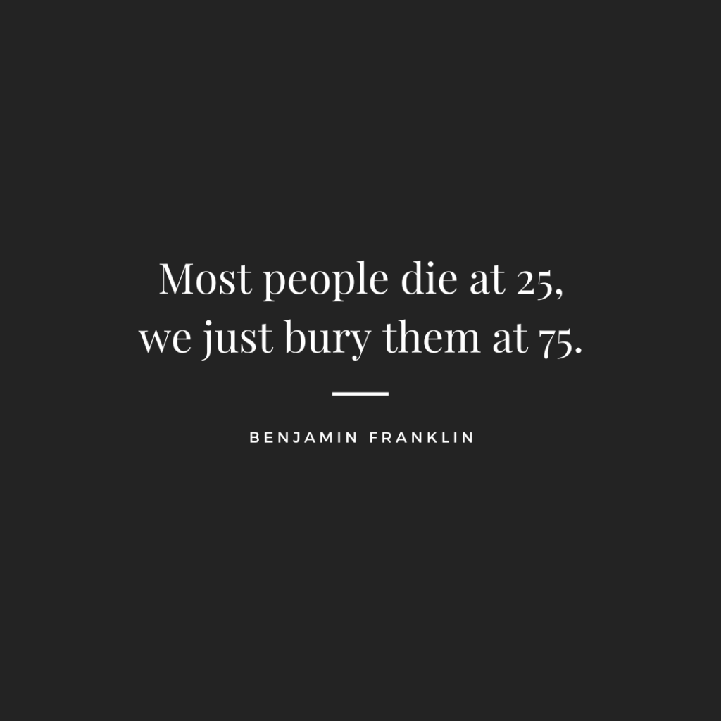 “Most people die at 25, we just bury them at 75.” Have you heard this quote before? Some of you might be familiar with it, while others are hearing it for the first time. This quote attributed to Benjamin Franklin, carries a message about life and growth. But what does it really mean?